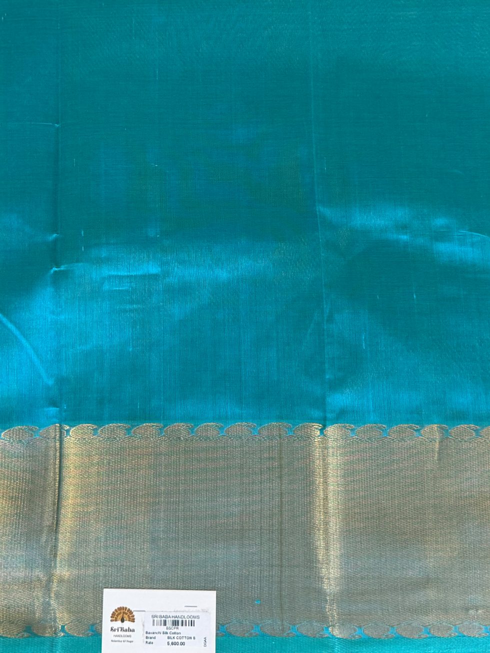 Bavanchi Silk Cotton In Teal With Traditional Border