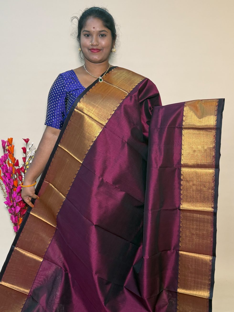 Bavanchi Silk Cotton In Wine With Traditional Border