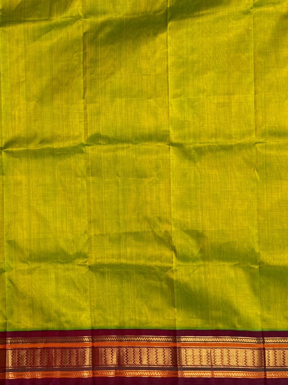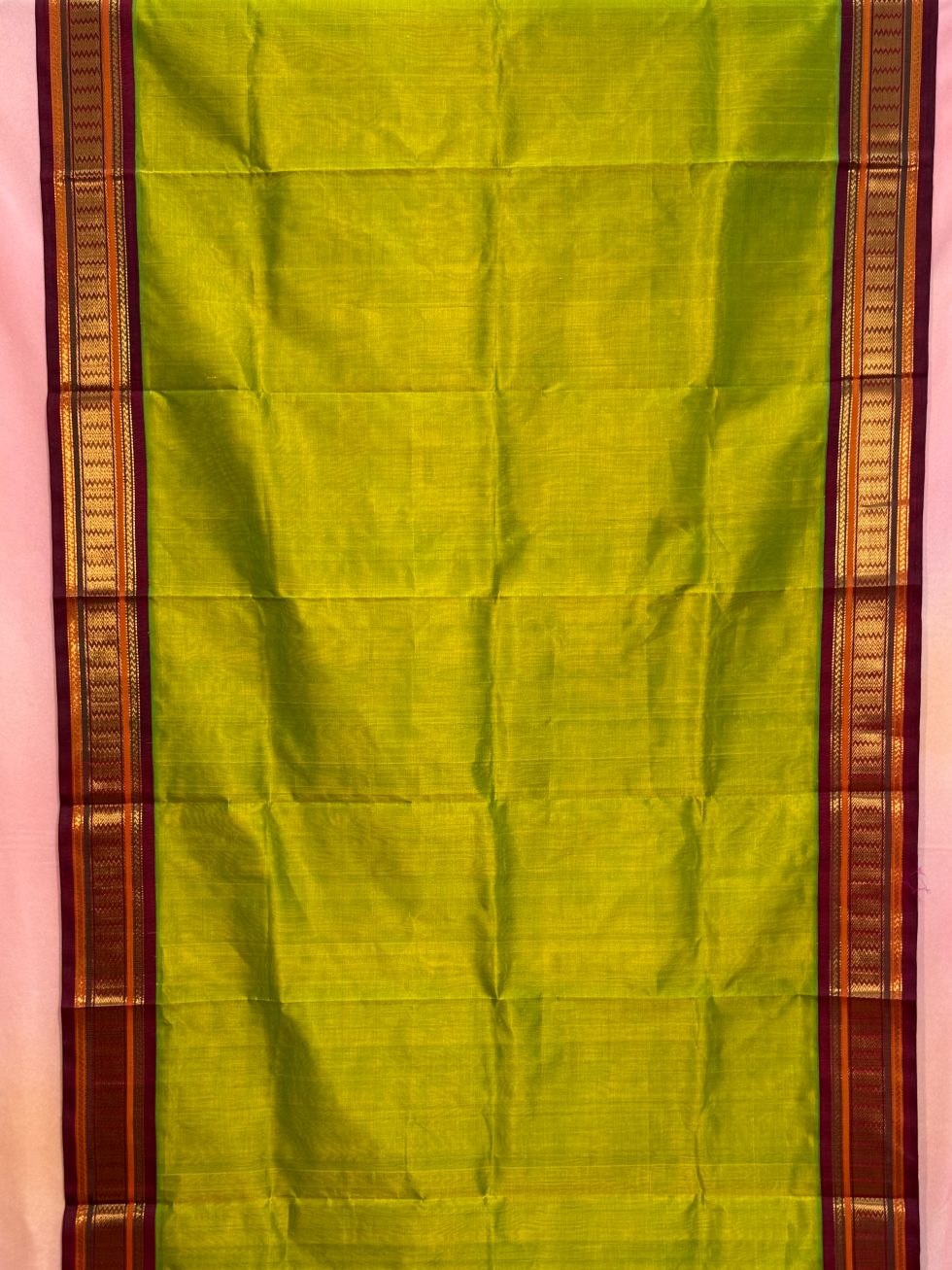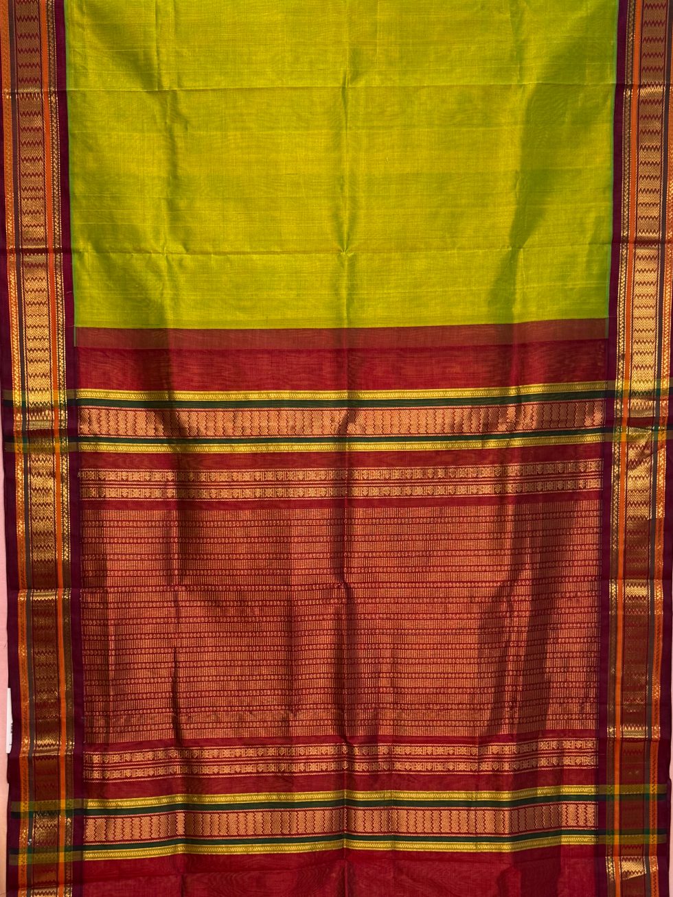 Madisar Korvai Silk Cotton Saree In Sneha Green And Arakku With Traditional Border