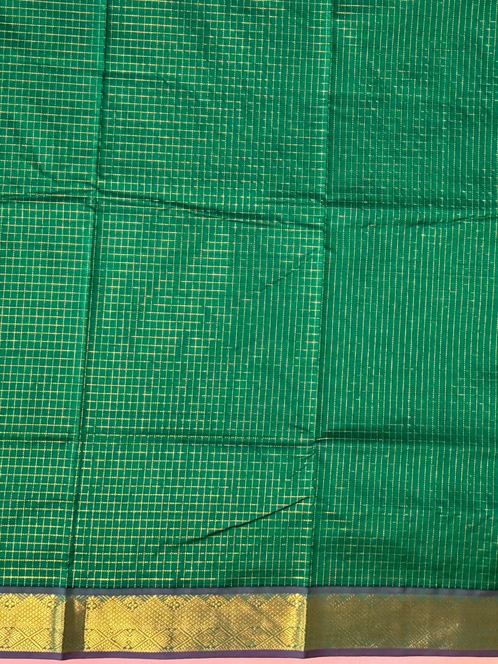Madisar Semi Silk Cotton Checked Saree In Green And Magentha With Traditional Border