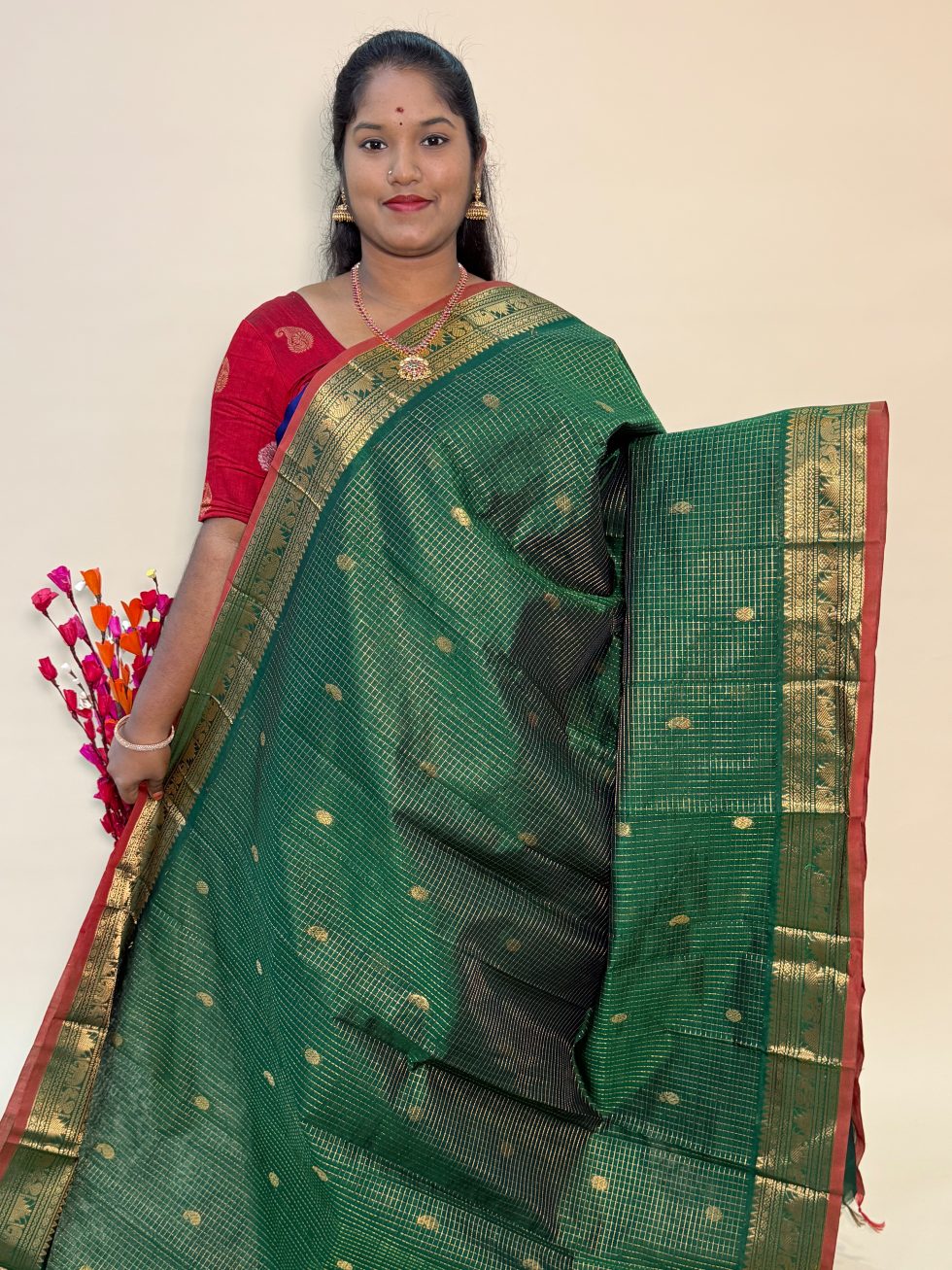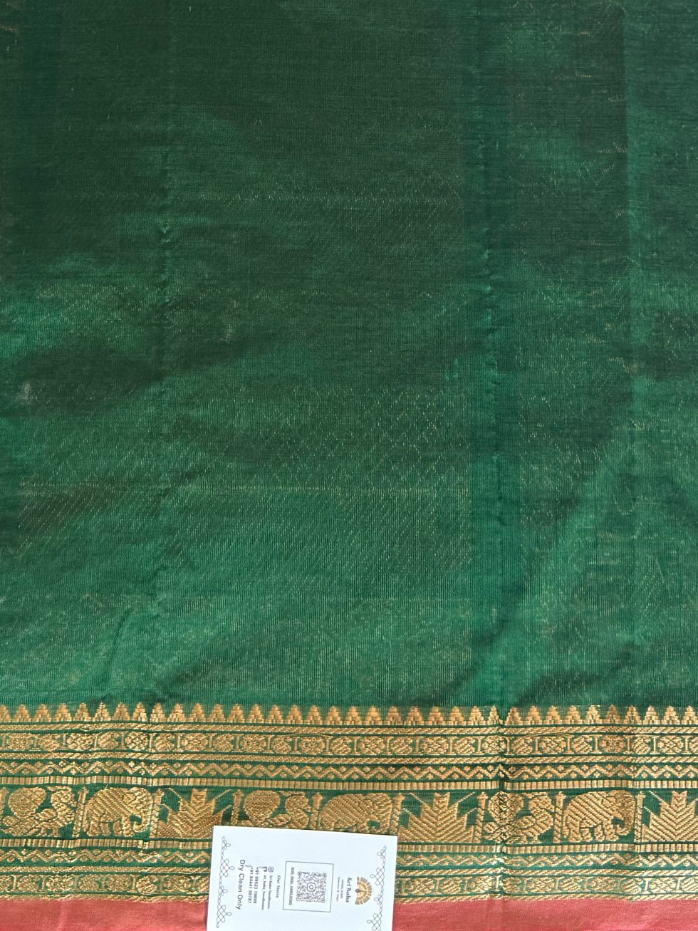 Mangalgiri Silk Cotton Checked Buttas In Green With Traditional Border