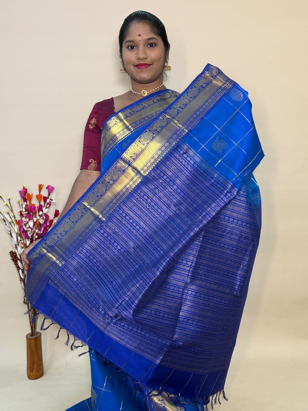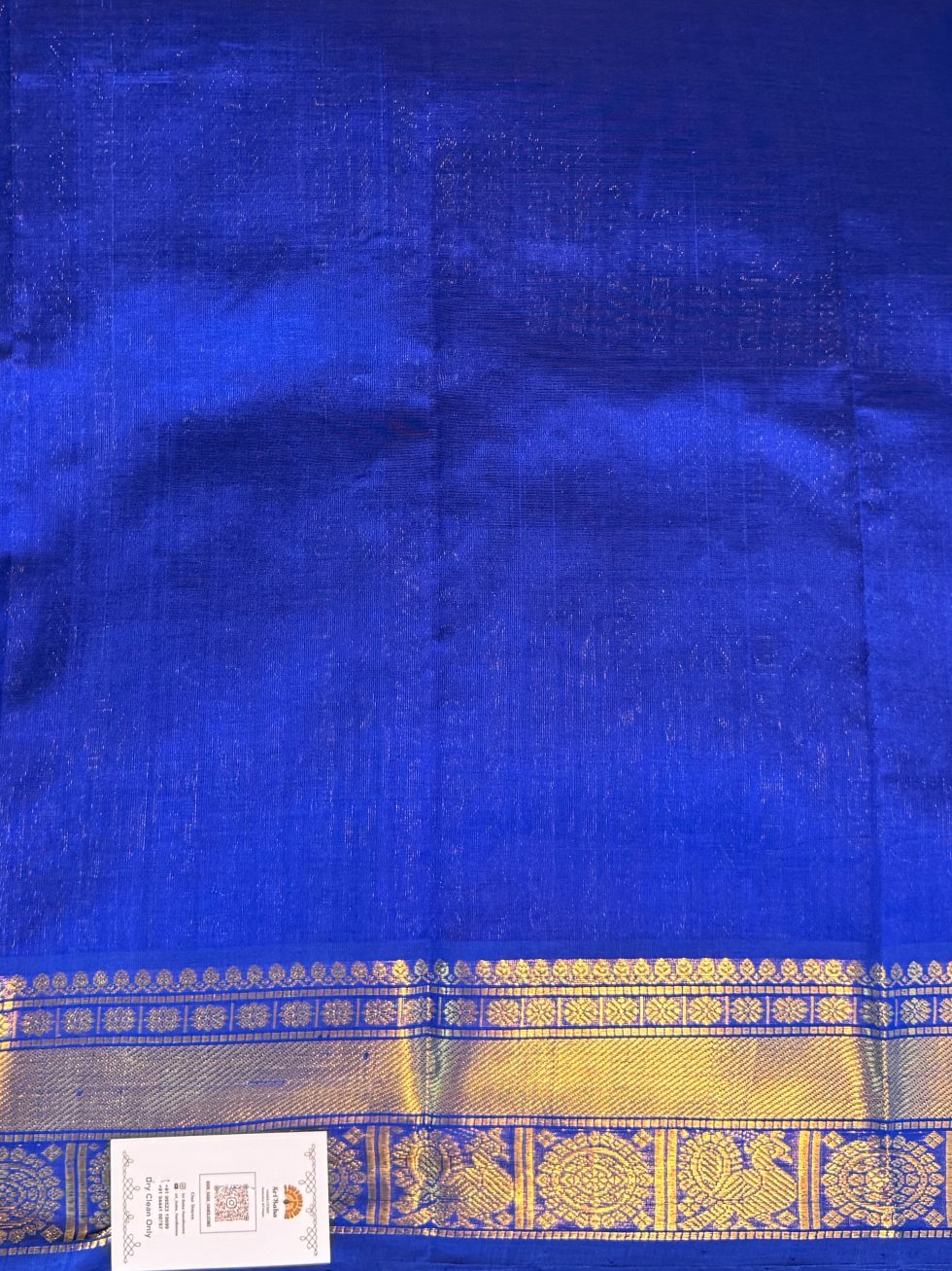 Mayil Chakram Silk Cotton in Anandha Blue and MS Blue With Traditional Border