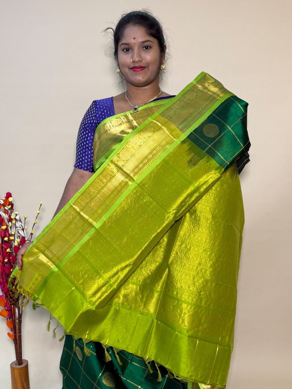 - Blouse : Attached(Contrast blouse as Pallu colour)