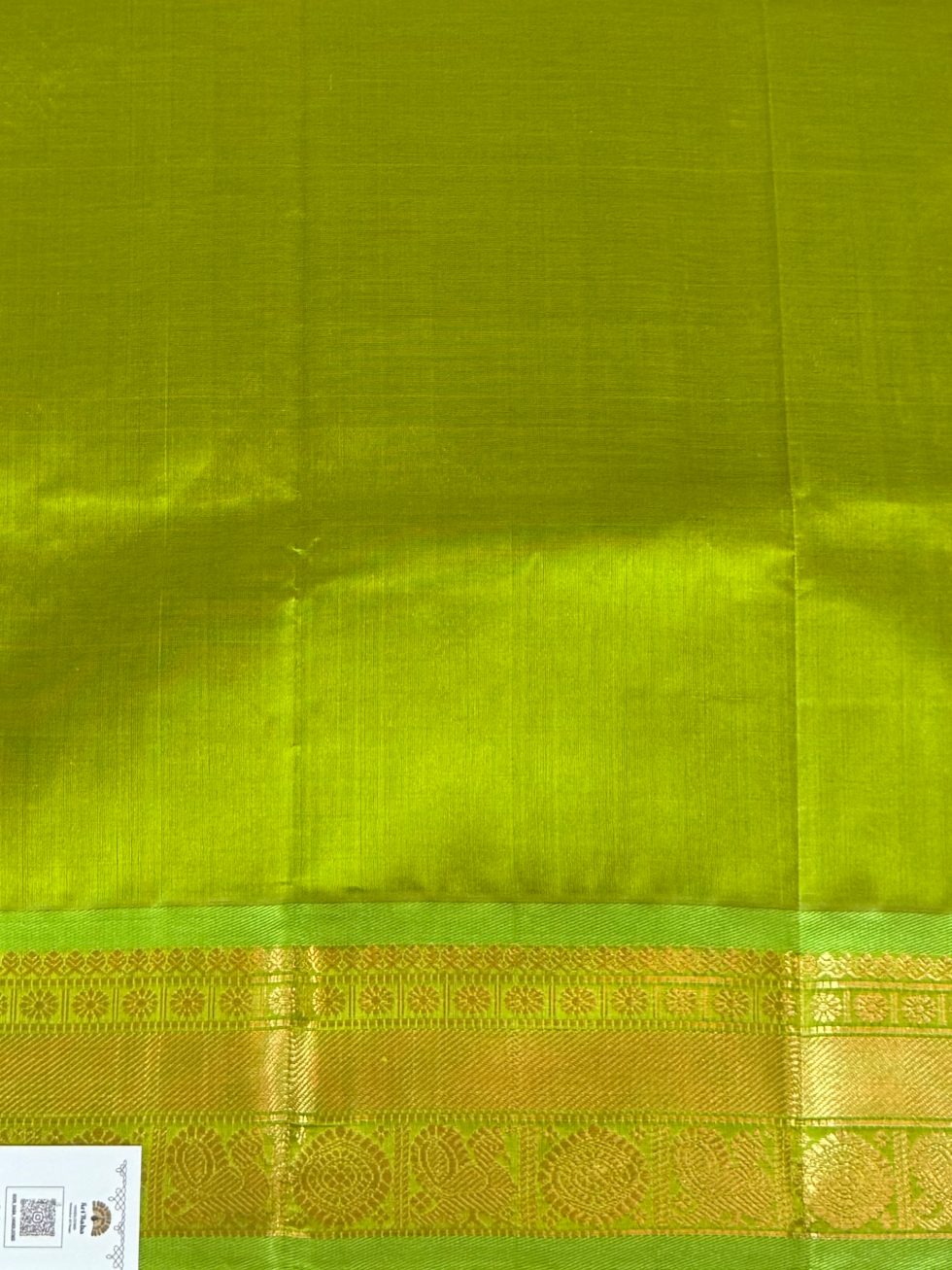 Mayil Chakram Silk Cotton in Green and Olive Green With Traditional Border