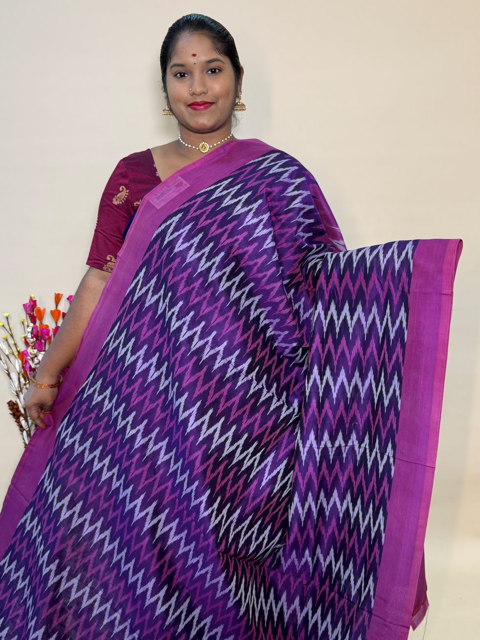 Mercerised Ikkat Cotton Saree In Magentha And Purple With Allover Ikkat Weaves