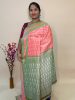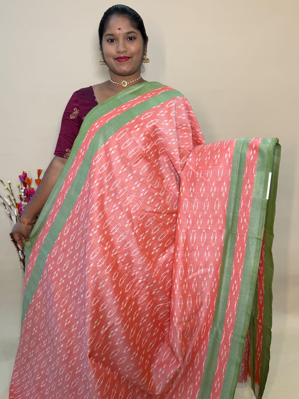 Mercerised Ikkat Cotton Saree In Pastel Orange And Pastel Green With Allover Ikkat Weaves