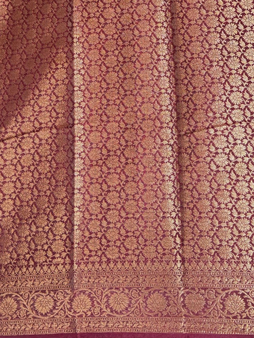 Semi Banarasi Raw Silk Saree In Mustard And Wine With Banarasi Border