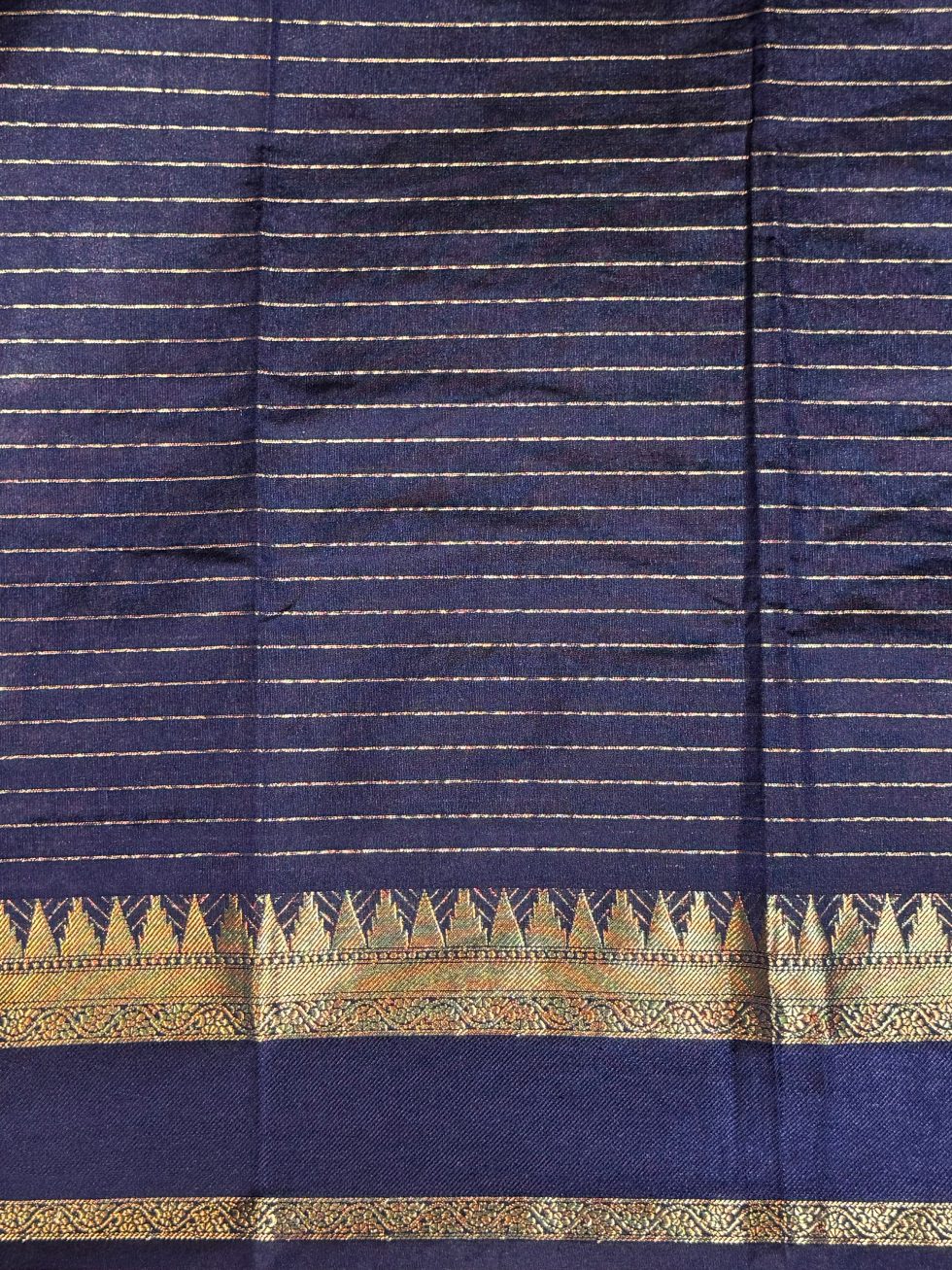 Semi Mysore Silk Checked Saree In Ramar Blue And Navy Blue With Rettapet Border