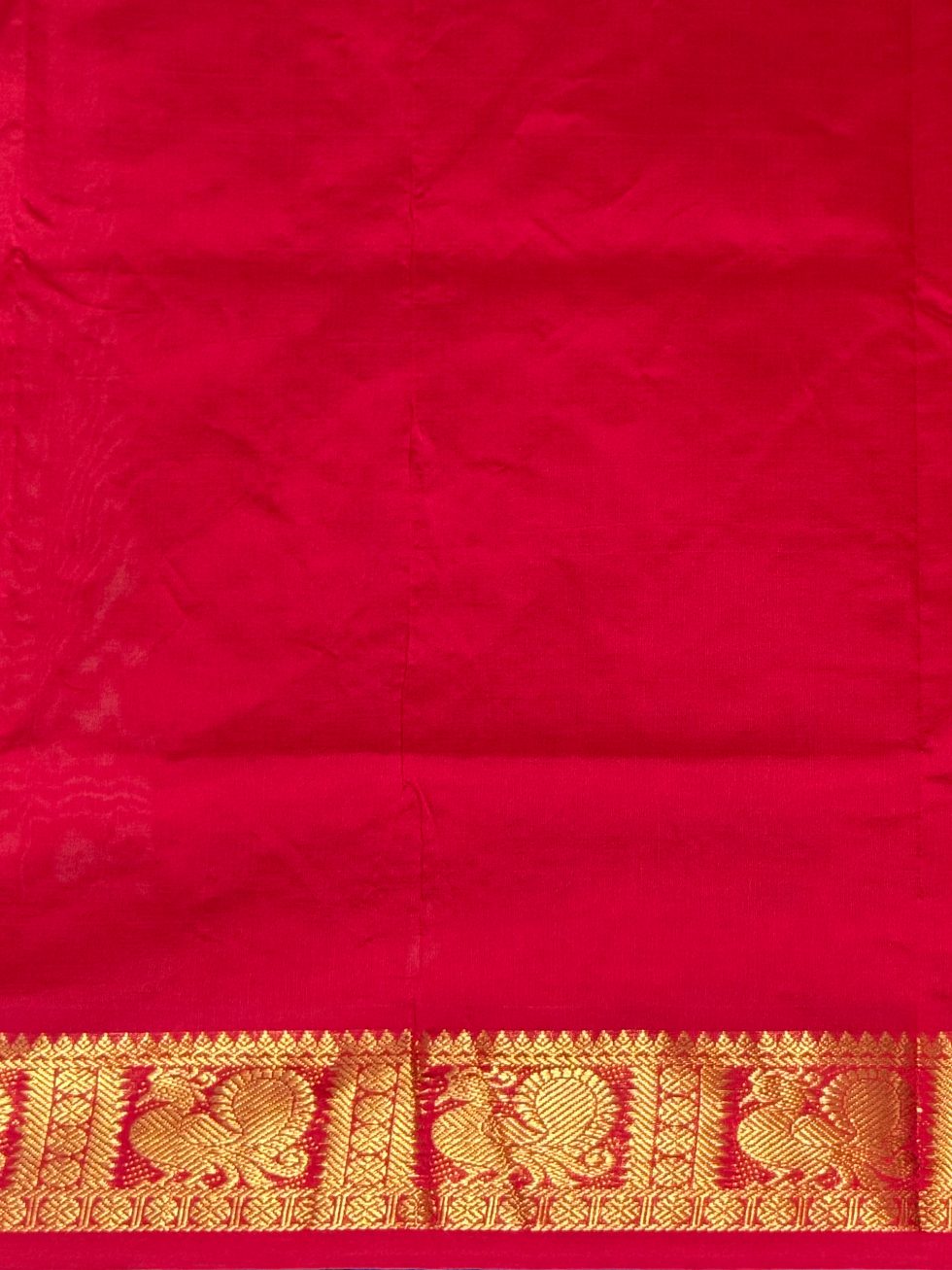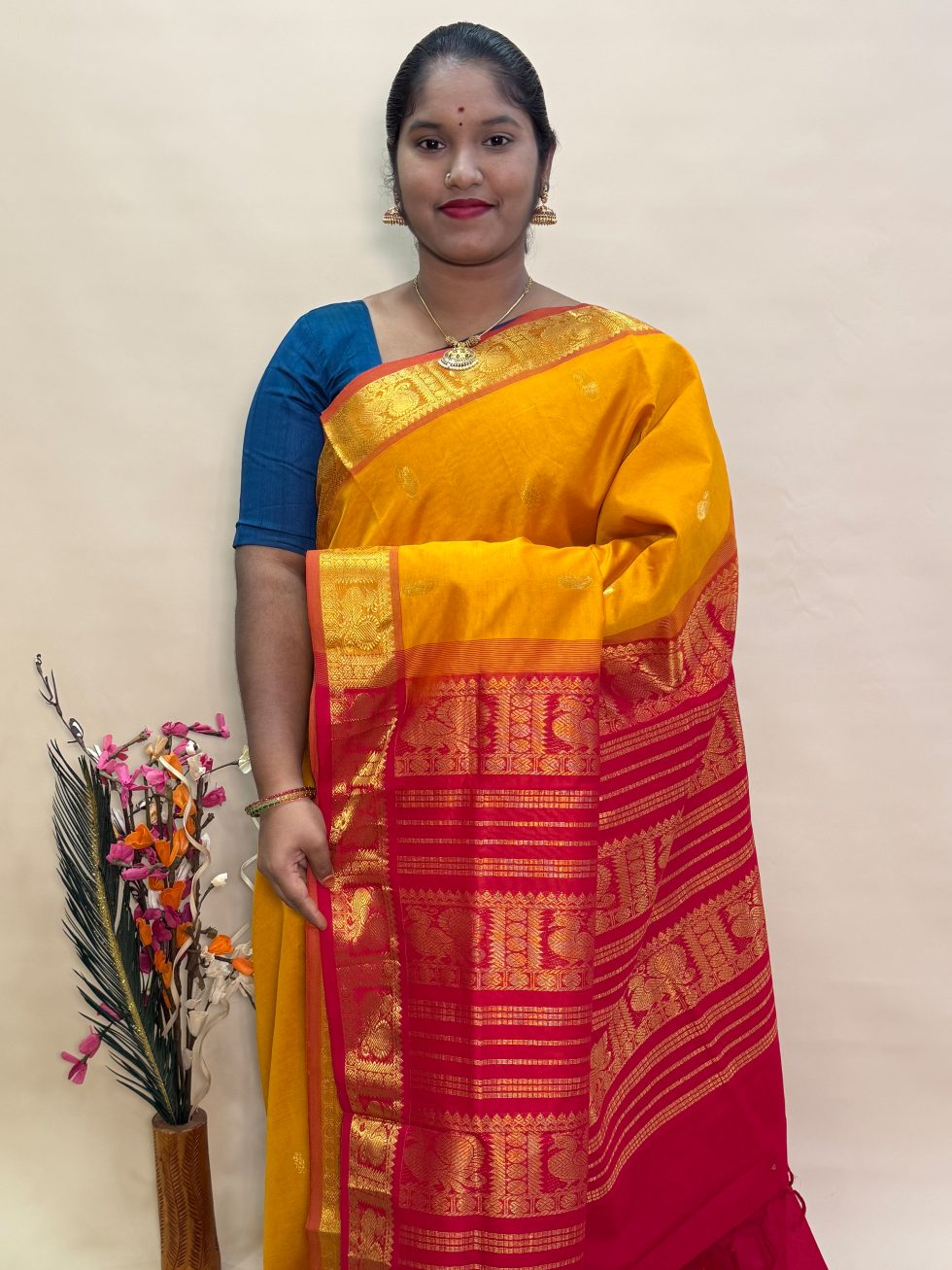 Semi Silk Cotton Buttas In Mustard And Red With Traditional Border