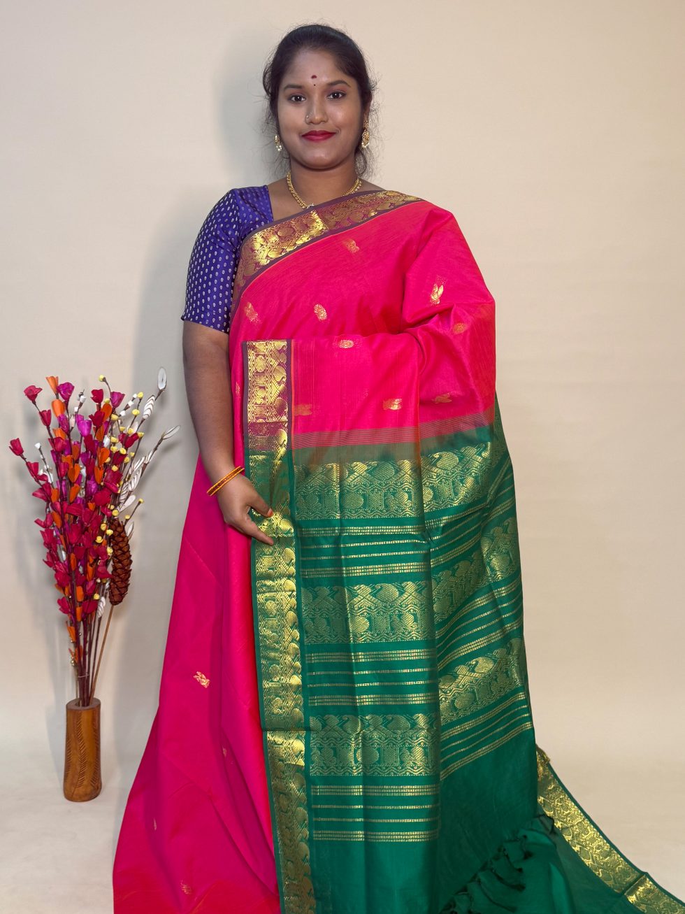 - Blouse : Attached(contrast blouse as Pallu colour))