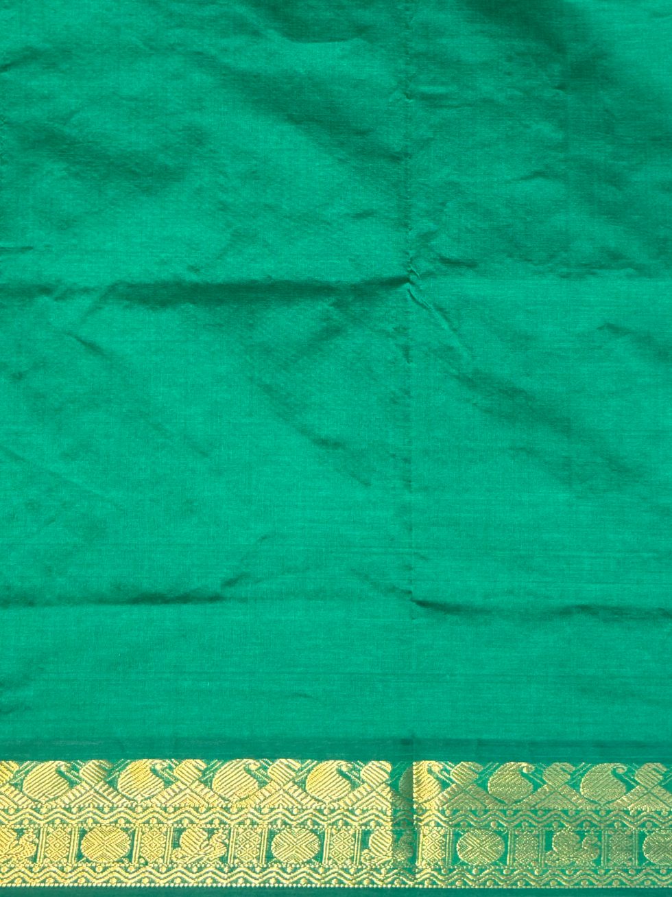 Semi Silk Cotton Buttas In Orangish Pink And Green With Traditional Border