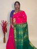 Semi Silk Cotton Buttas In Orangish Pink And Green With Traditional Border