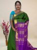 Semi Silk Cotton Kattam In Olive Green And Magentha With Traditional Border