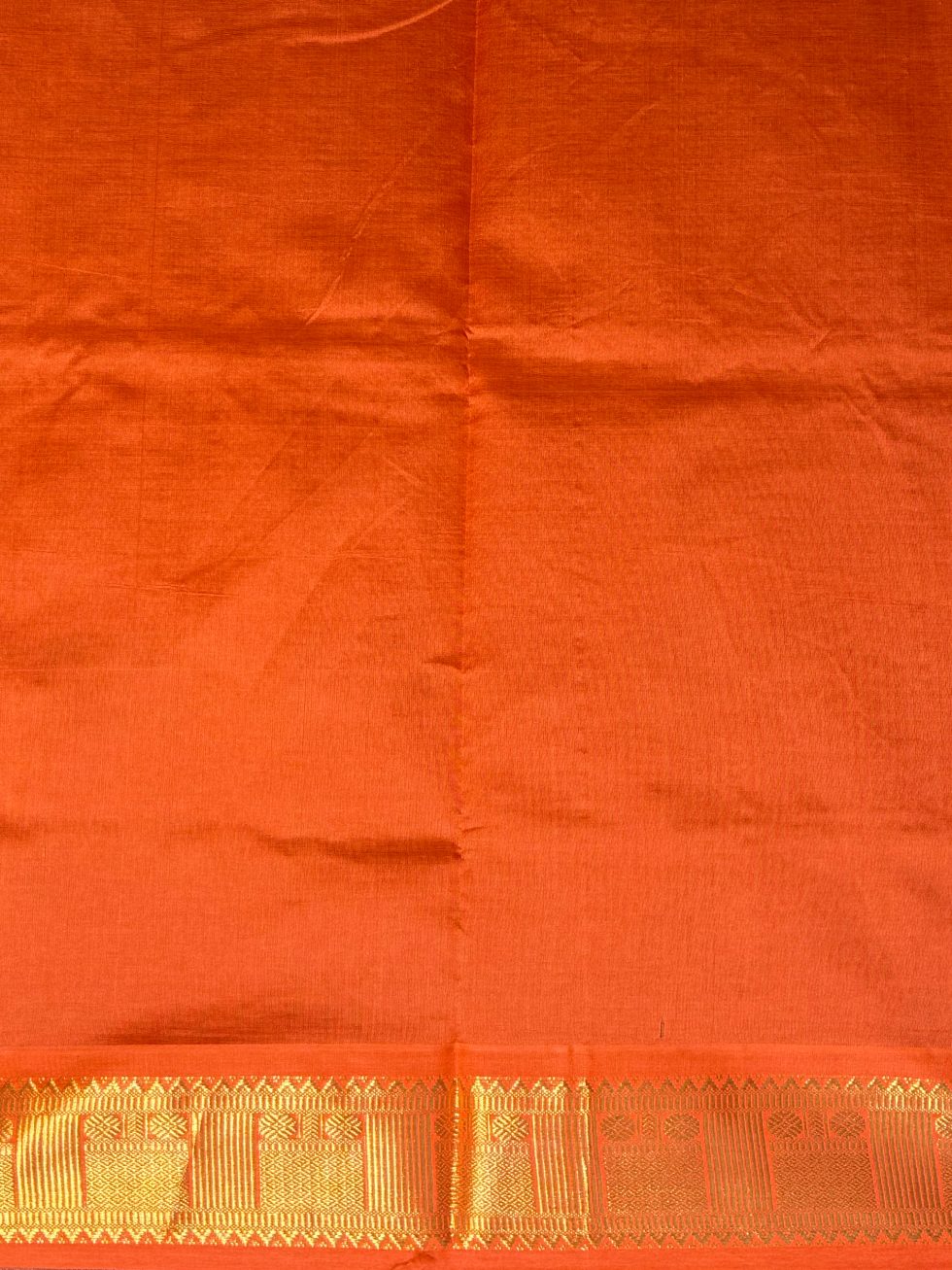 Semi Silk Cotton Plain In Dark Magentha And Orange With Traditional Border