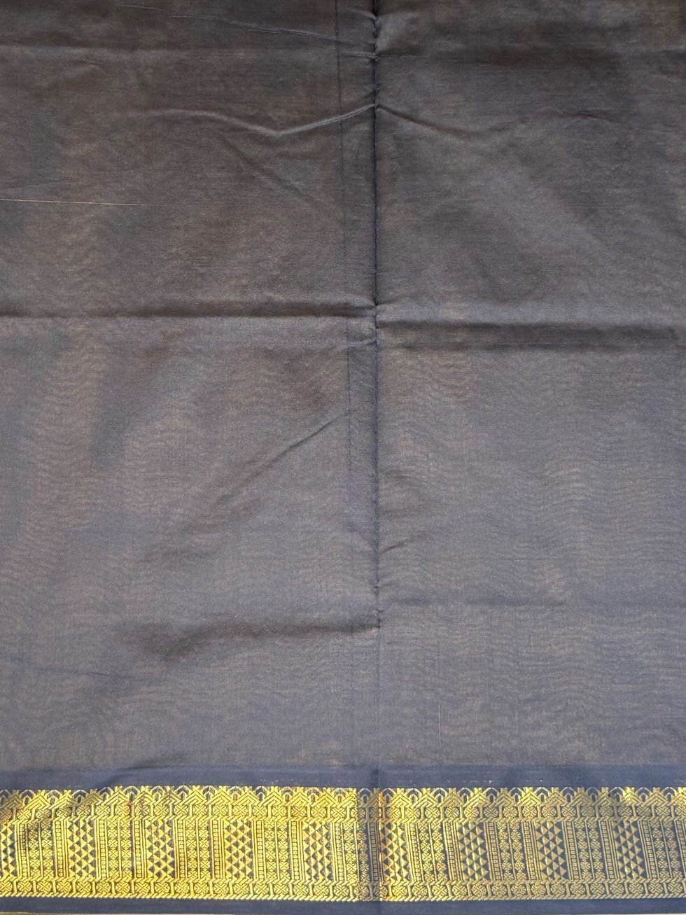 Semi Silk Cotton Plain In Mustard And Black With Traditional Border