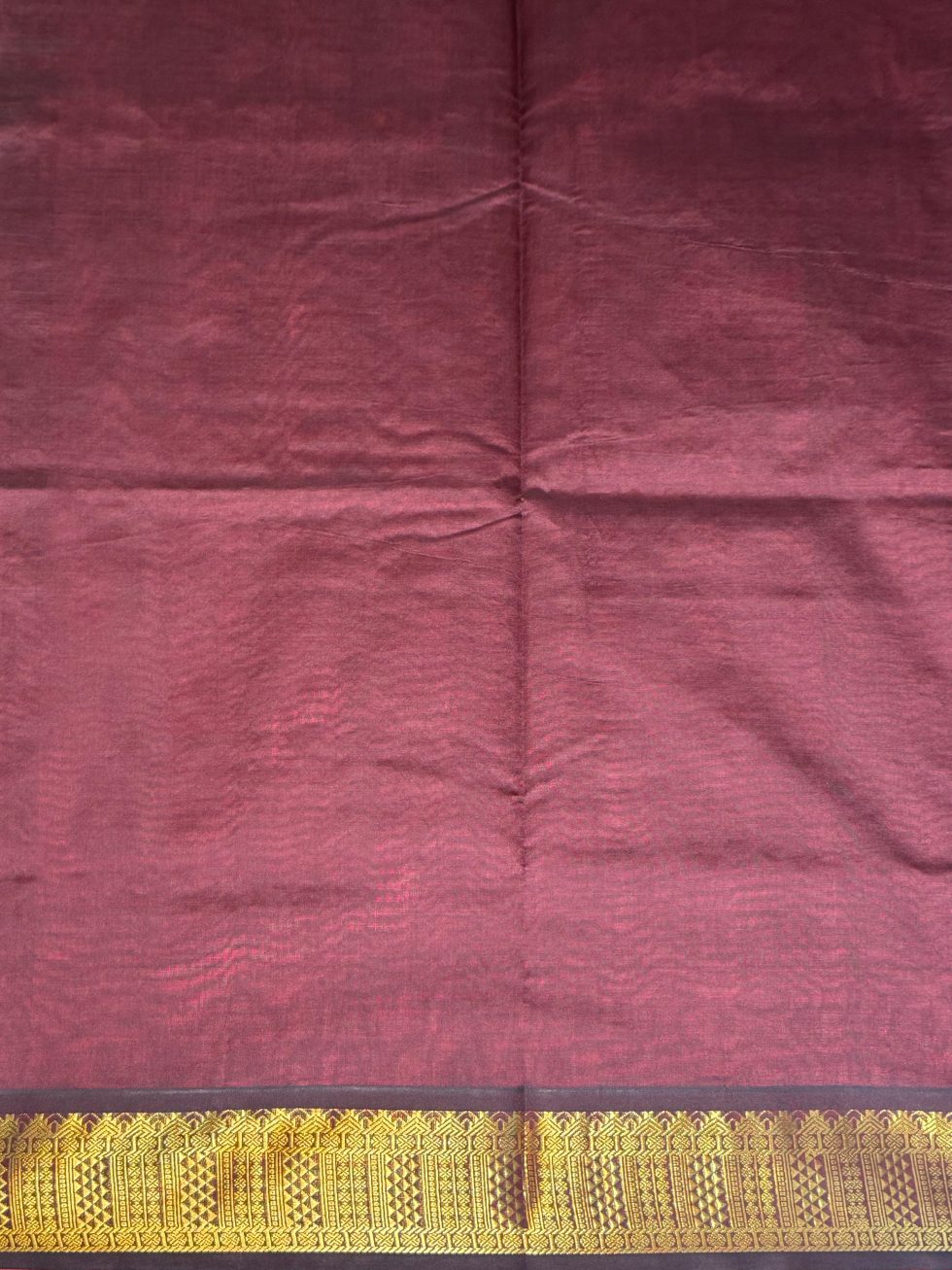 Semi Silk Cotton Plain In Peach Orange And Brown With Traditional Border