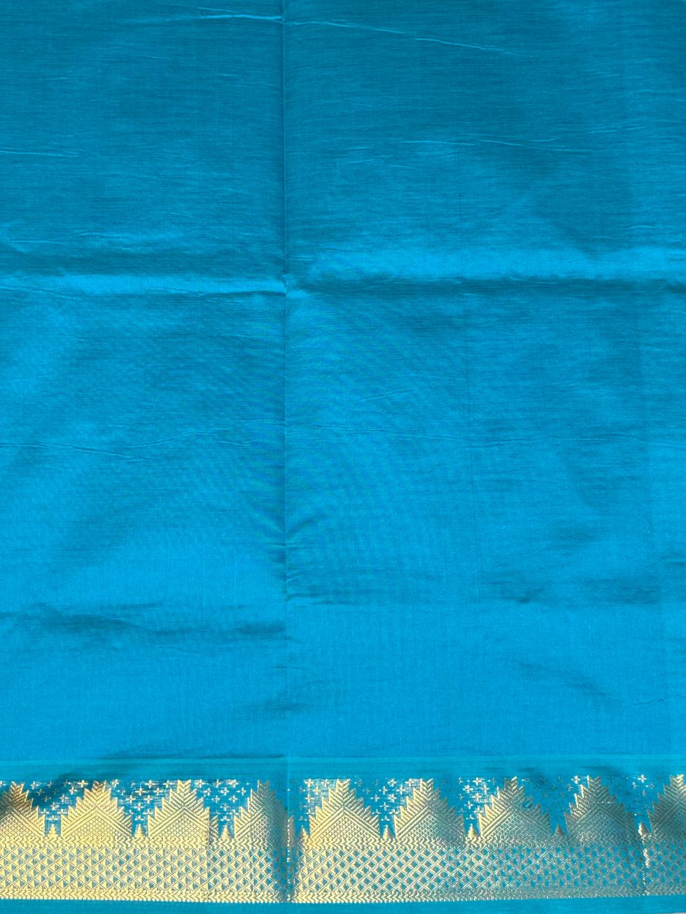 Semi Silk Cotton Plain In Royal Blue And Peacock Green With Traditional Border