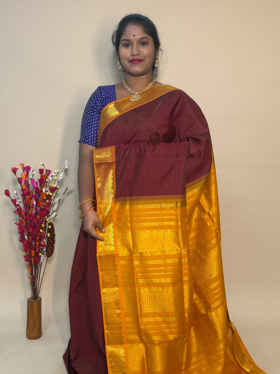 Semi Silk Cotton Vairaoosi In Arakku And Mustard With Traditional Border