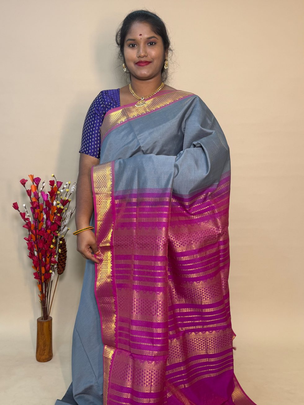 - Blouse : Attached(contrast blouse as Pallu colour))