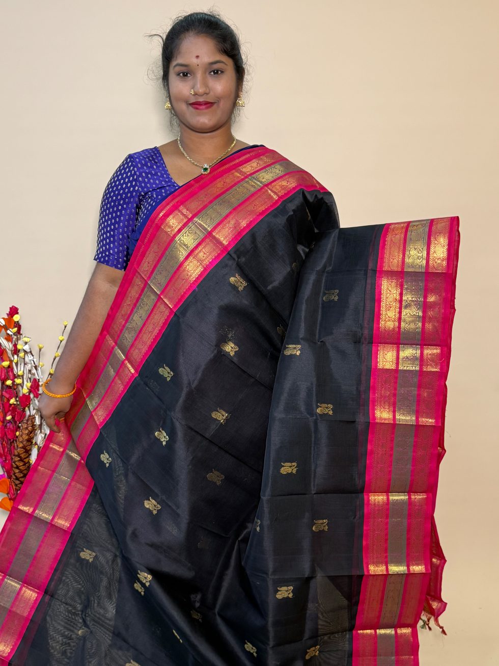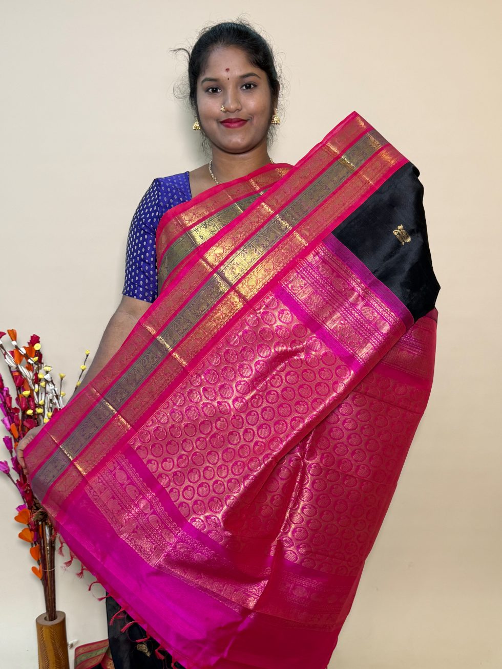 Silk Cotton Korvai Buttas In Black And Pink With Traditional Border