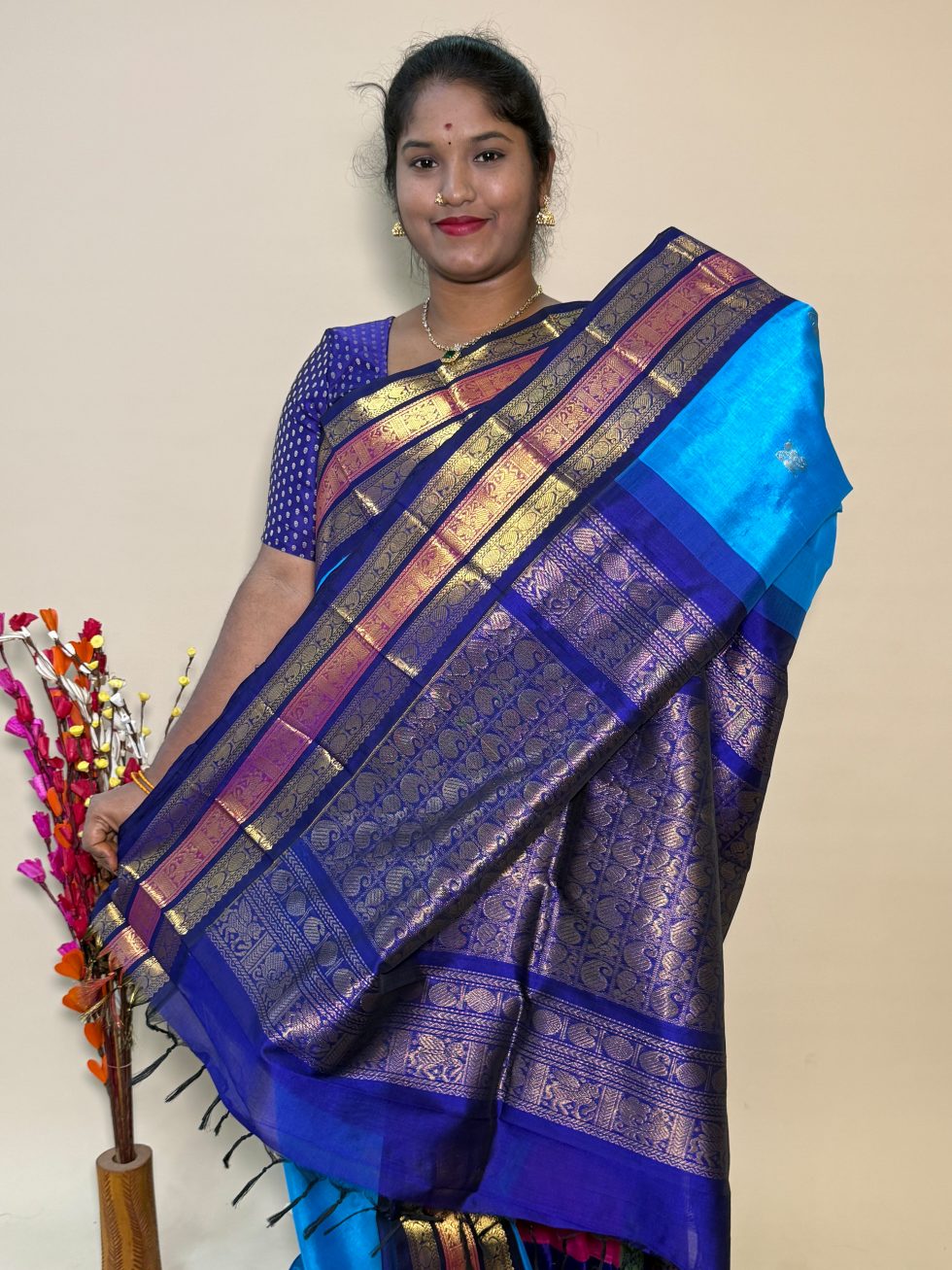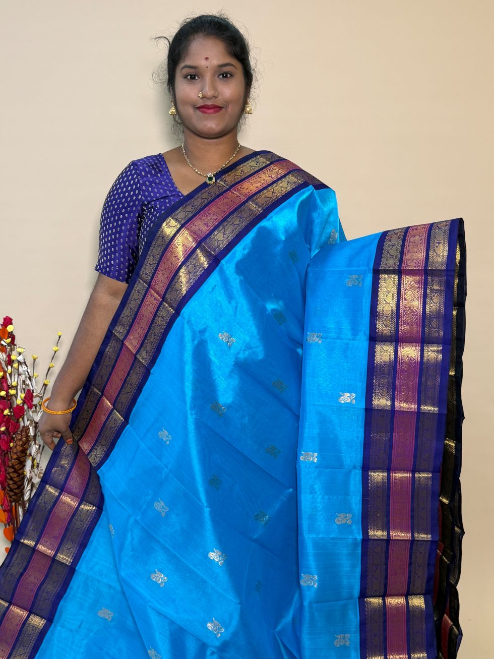Silk Cotton Korvai Buttas In CS Blue And Violet With Traditional Border