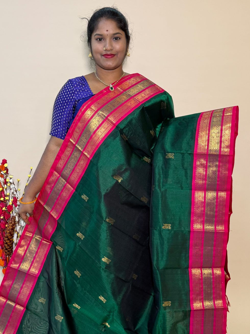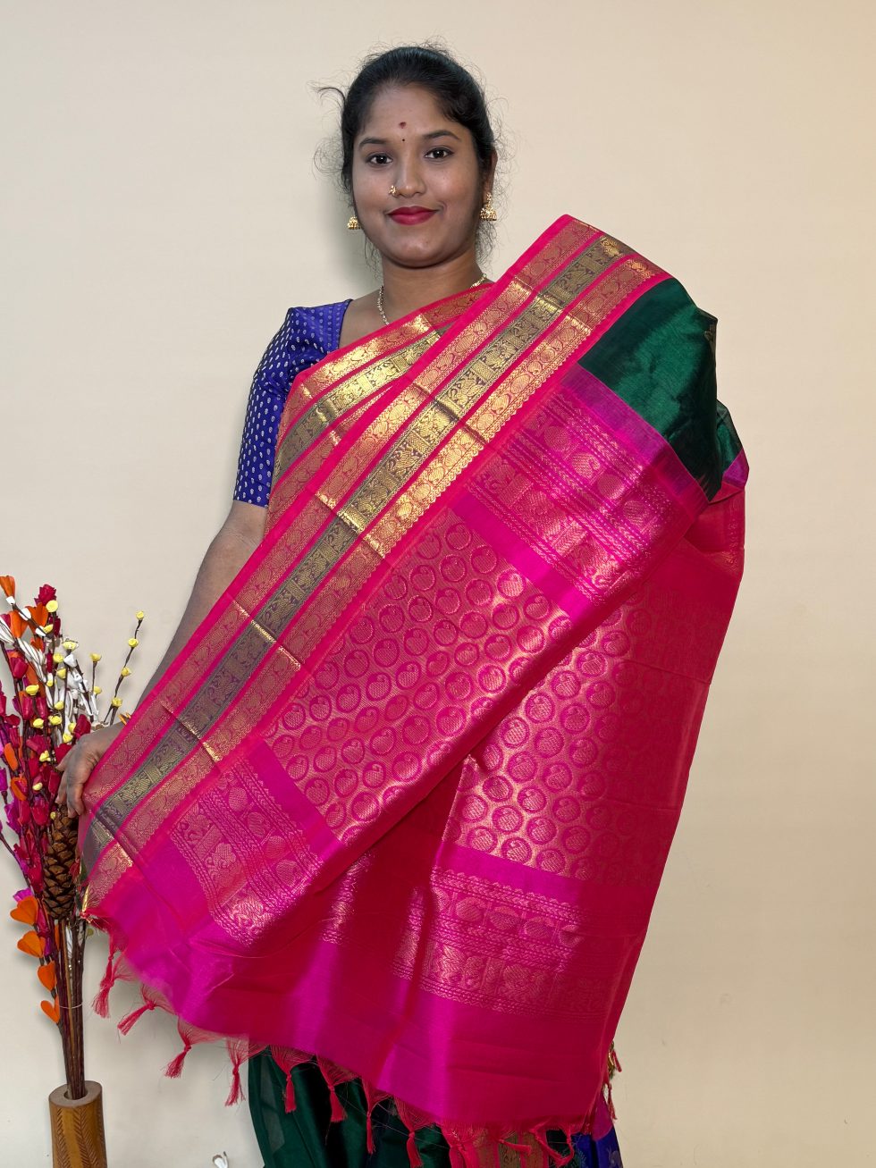 Silk Cotton Korvai Buttas In Green And Pink With Traditional Border