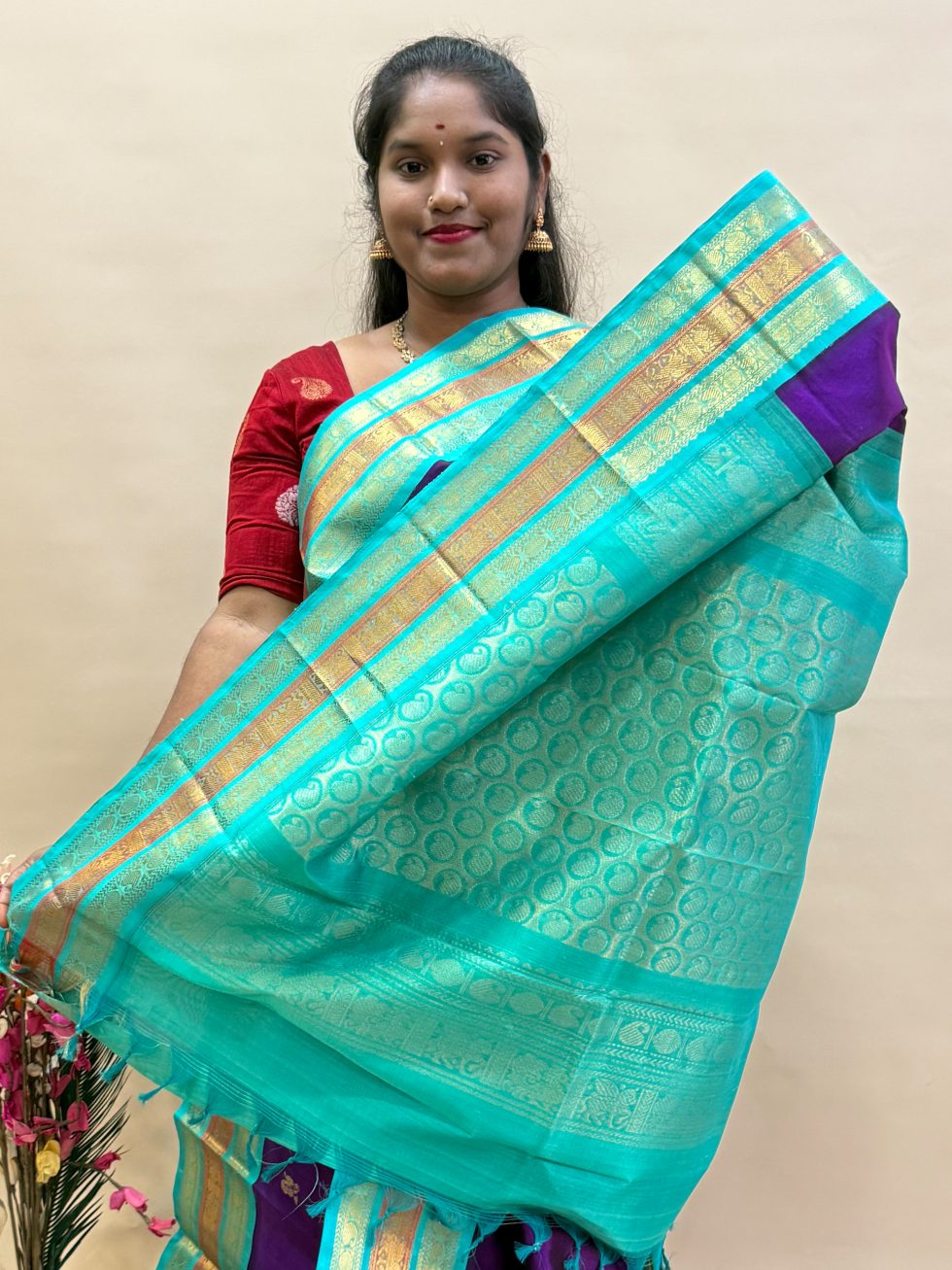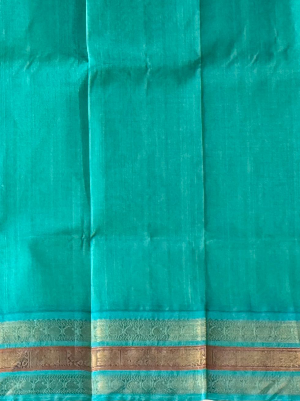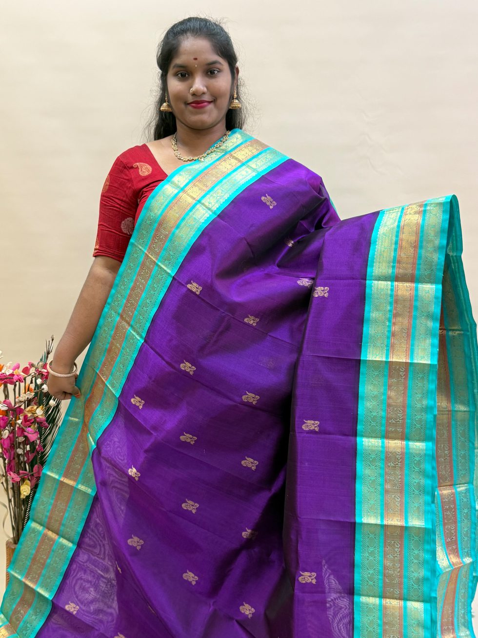 Silk Cotton Korvai Buttas In Magentha And Teal With Traditional Border