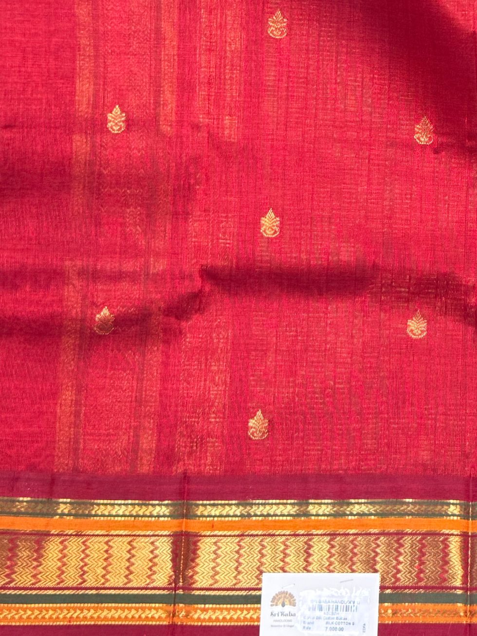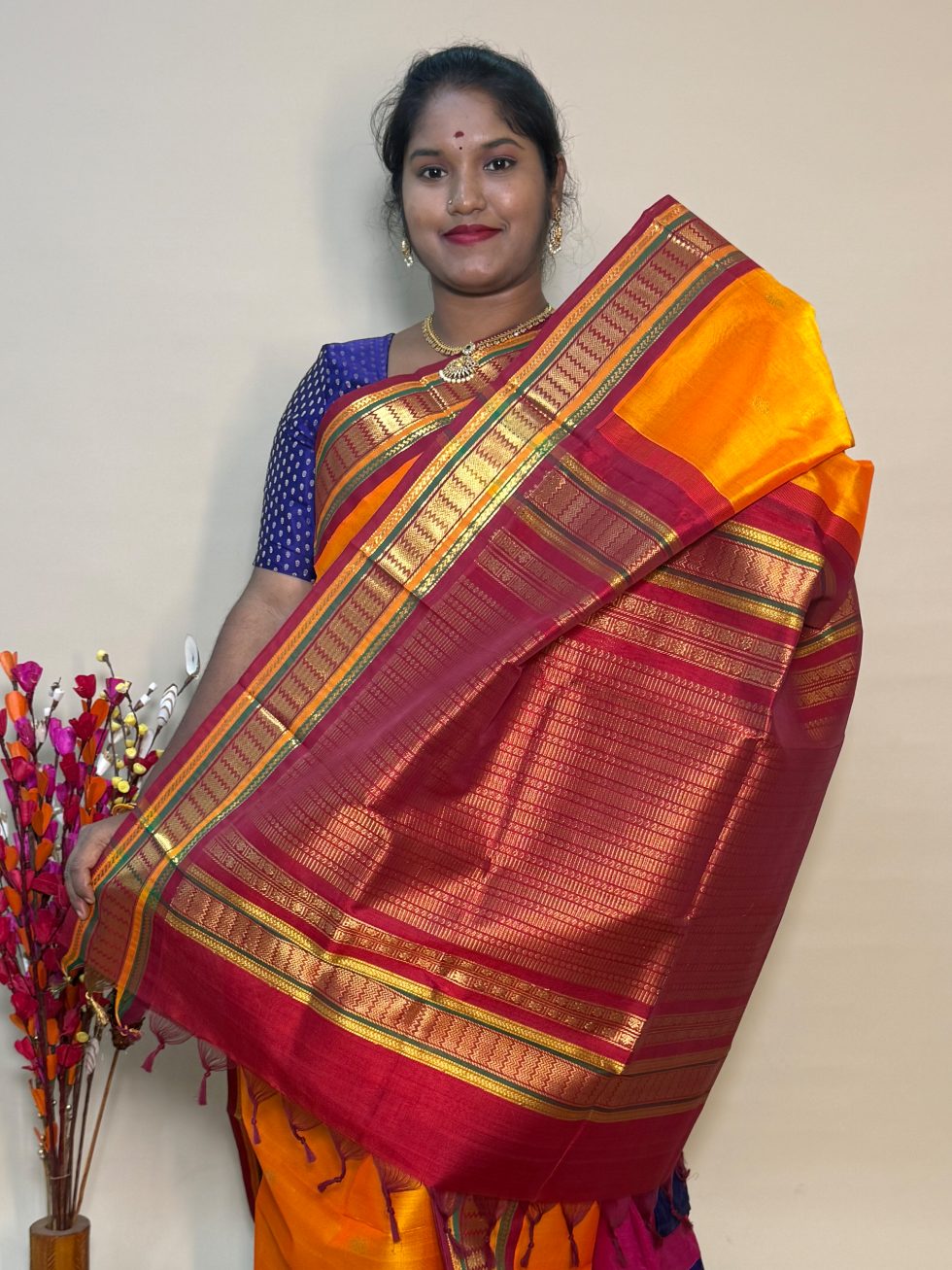 Silk Cotton Korvai Buttas In Sunset Orange And Maroon With Traditional Border