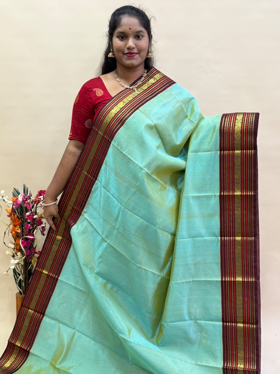 Silk Cotton Korvai in Dual Shaded Teal And Arakku With Traditional Border