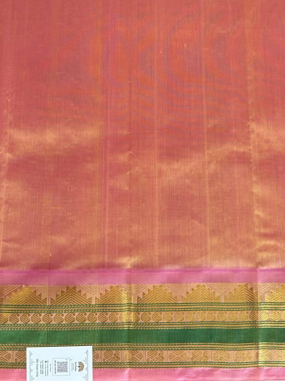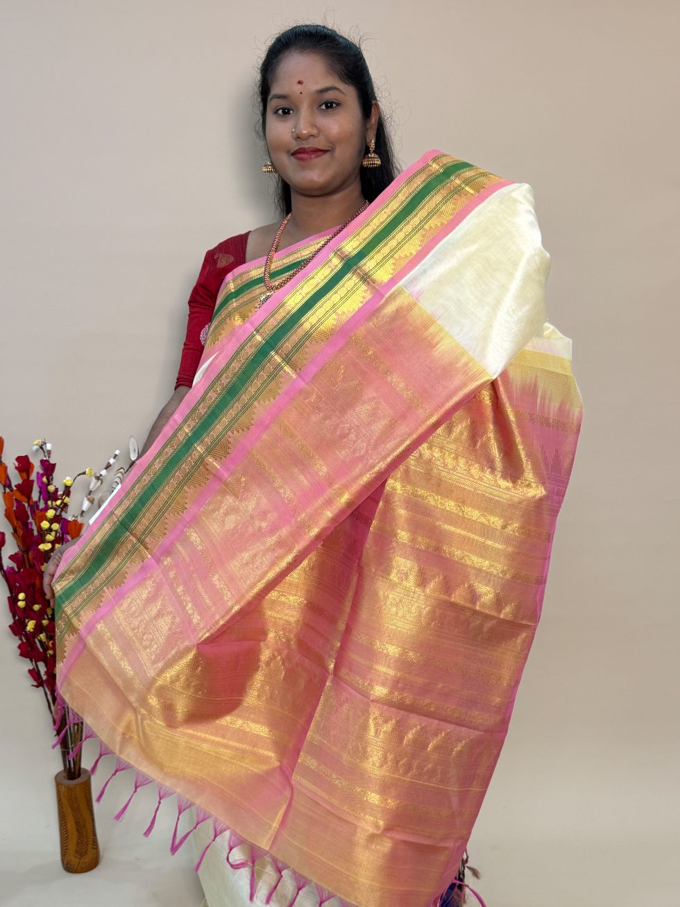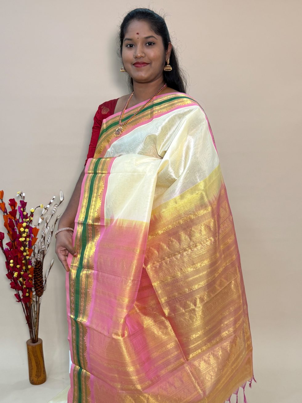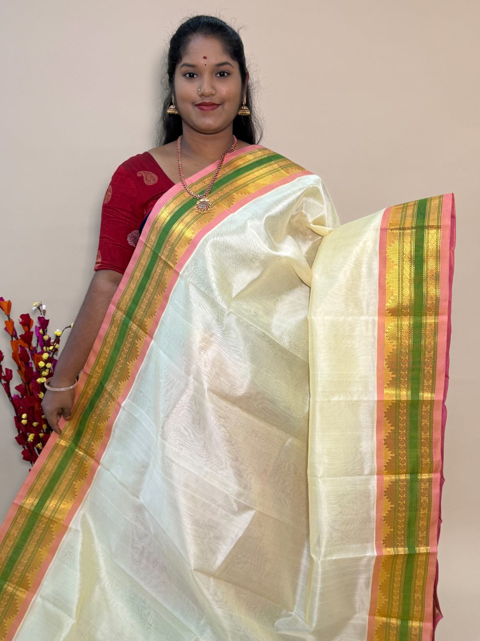 Silk Cotton Korvai in Half White And Peach With Traditional Border