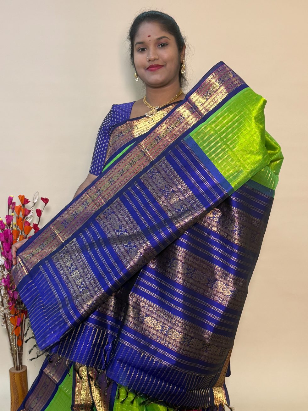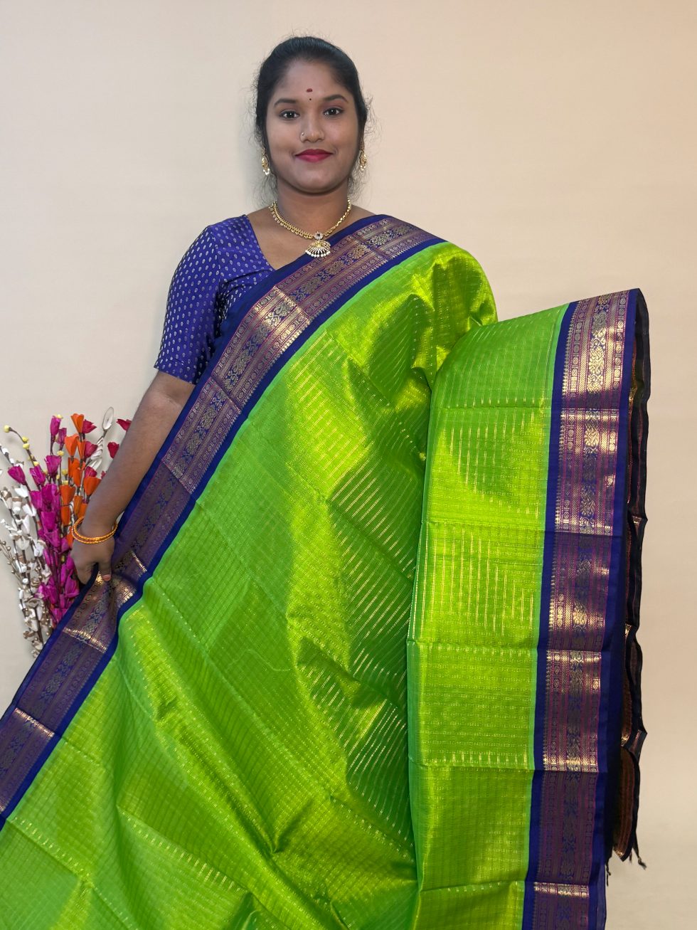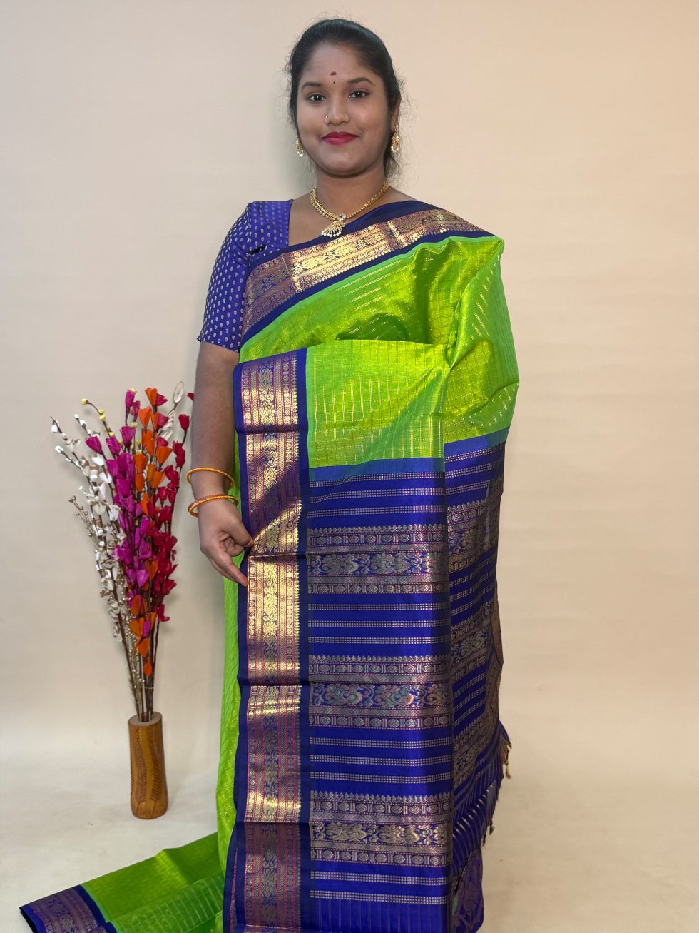 Silk Cotton Korvai Muthu Kattam in Parrot Green And Violet With Traditional Border