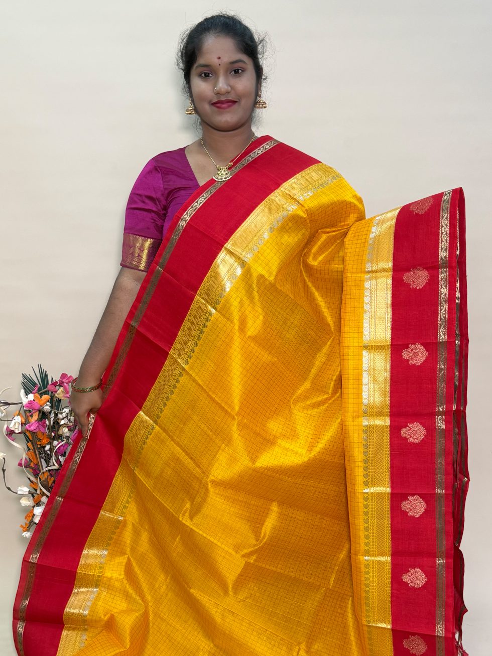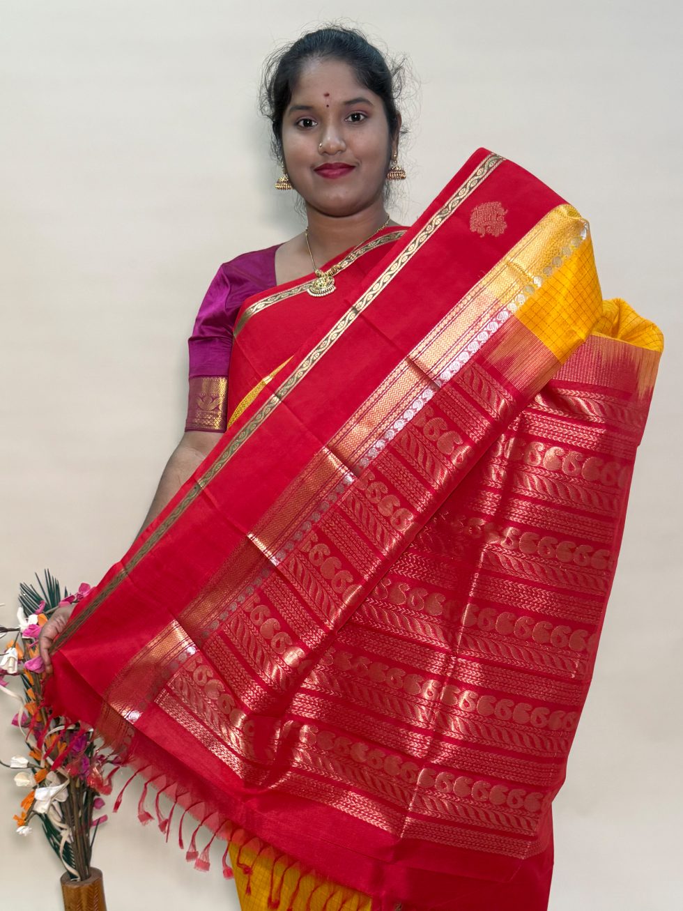 Silk Cotton Korvai Side Buttas In Mustard And Red With Traditional Border