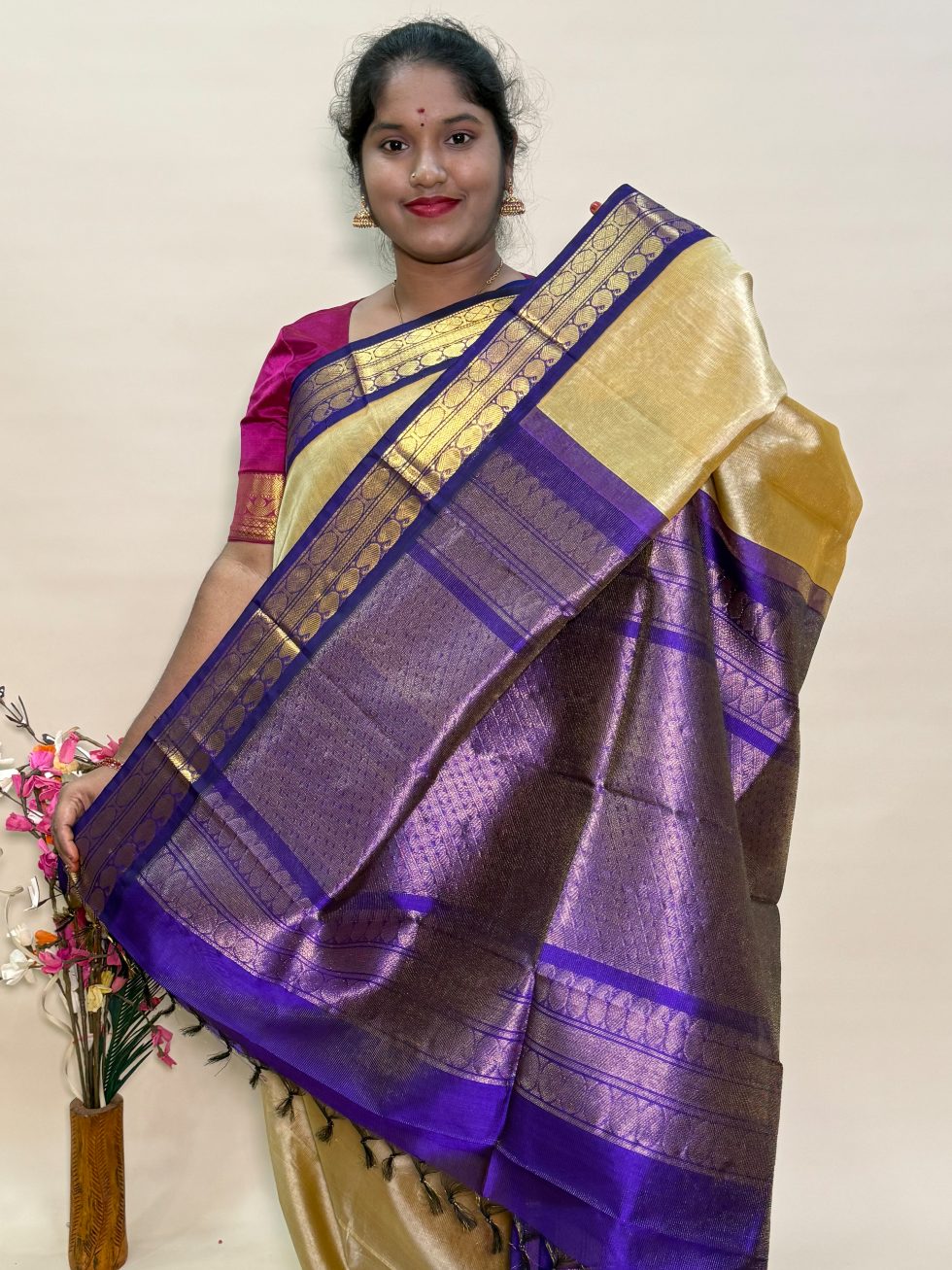 Silk Cotton Korvai Vairaoosi in Beige And Violet With Traditional Border