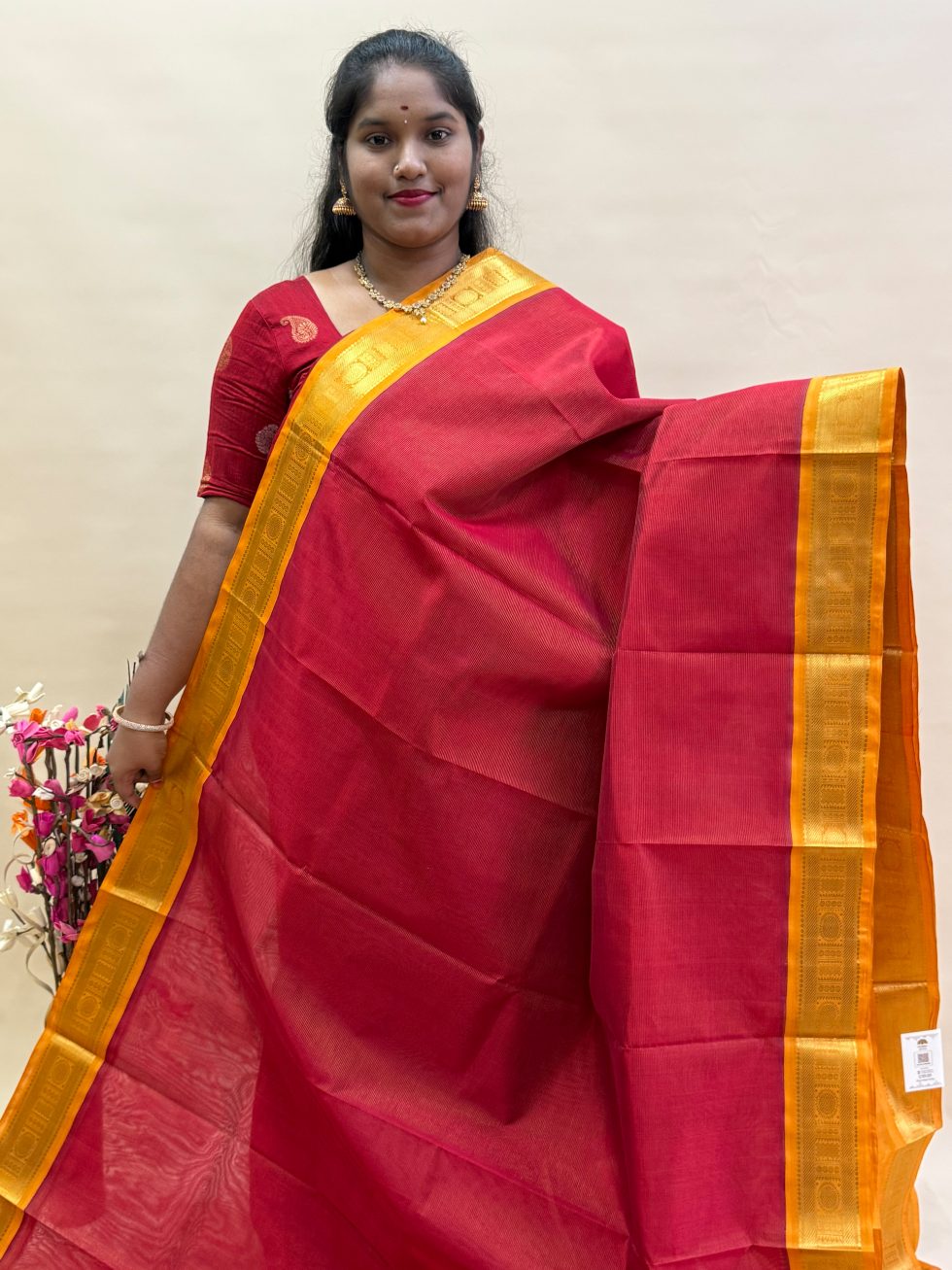 Silk Cotton Korvai Vairaoosi in Maroon And Mustard With Traditional Border