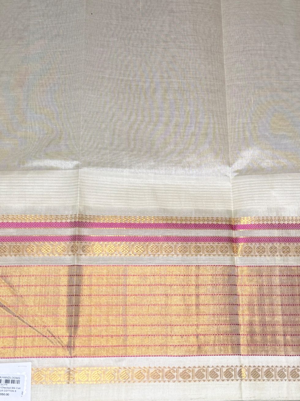 Silk Cotton Kuppadam Checked in Mustard And Half White With Traditional Border