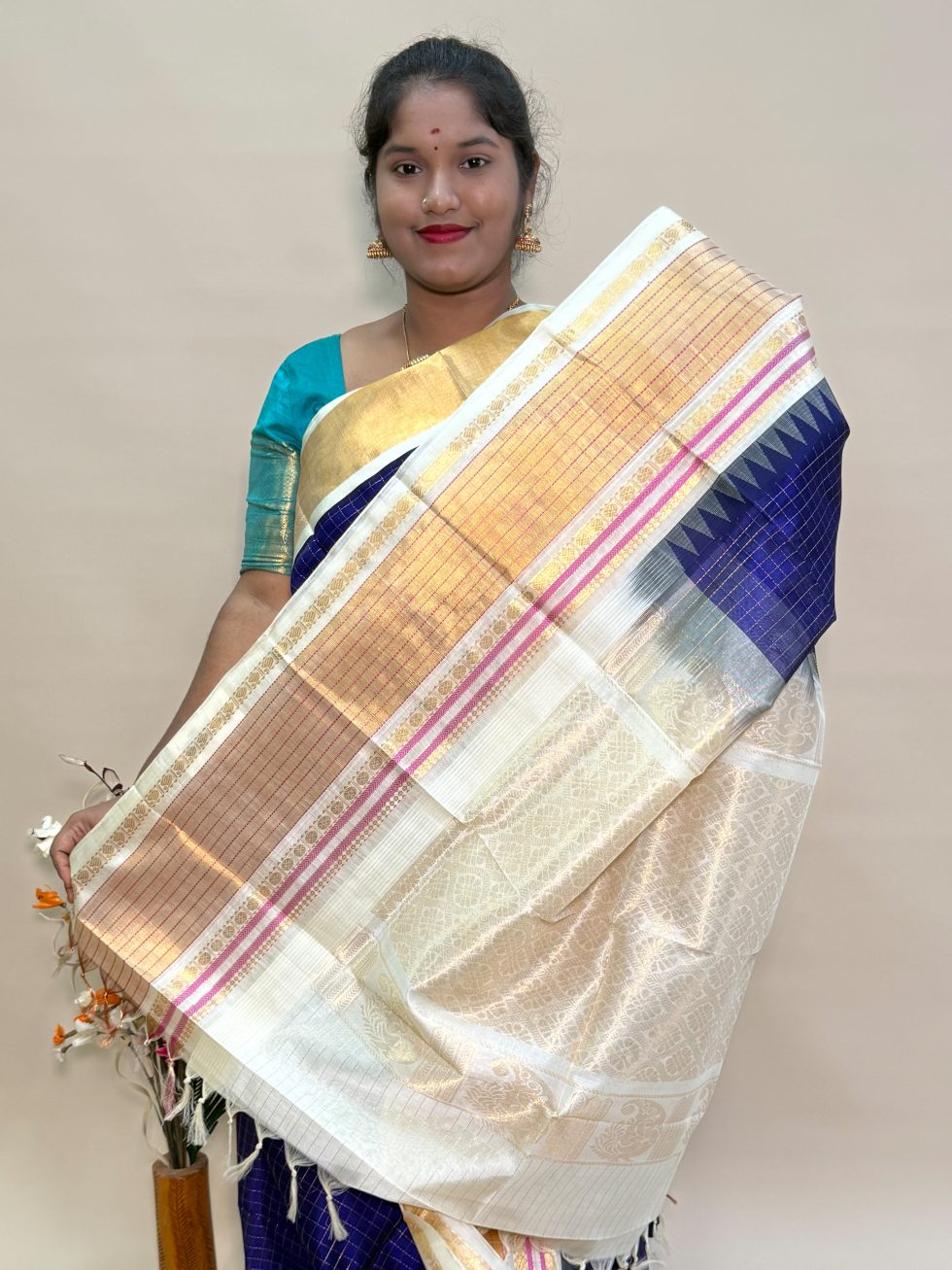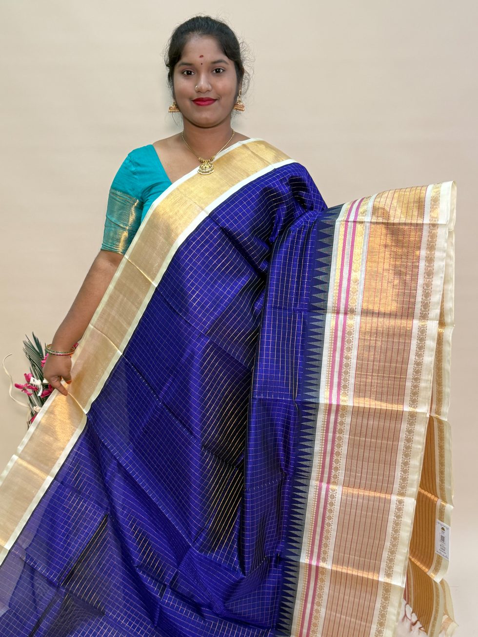 Silk Cotton Kuppadam Checked in Violet And Half White With Traditional Border