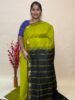 Simple Semi Silk Cotton Saree In Lime Green And Black With Traditional Small Border