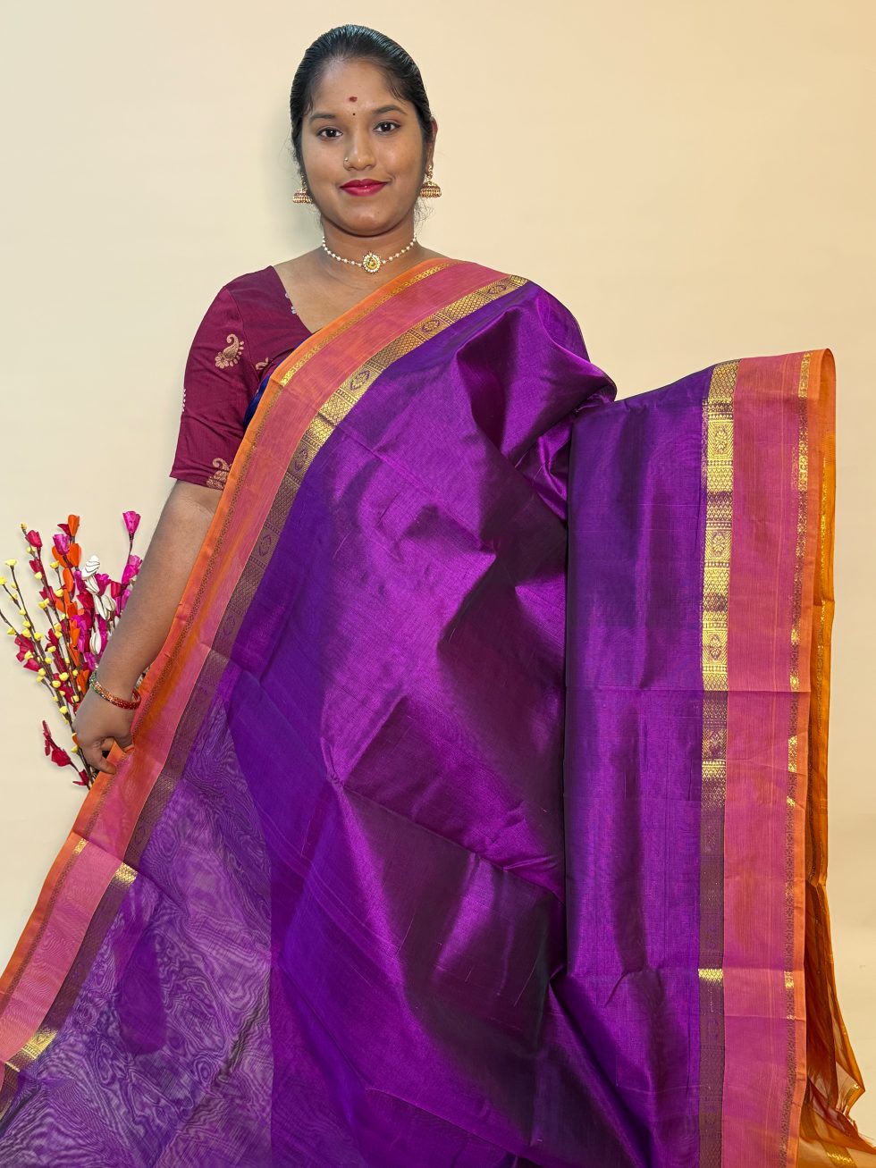 - Blouse : Attached(Contrast blouse as Pallu colour)
