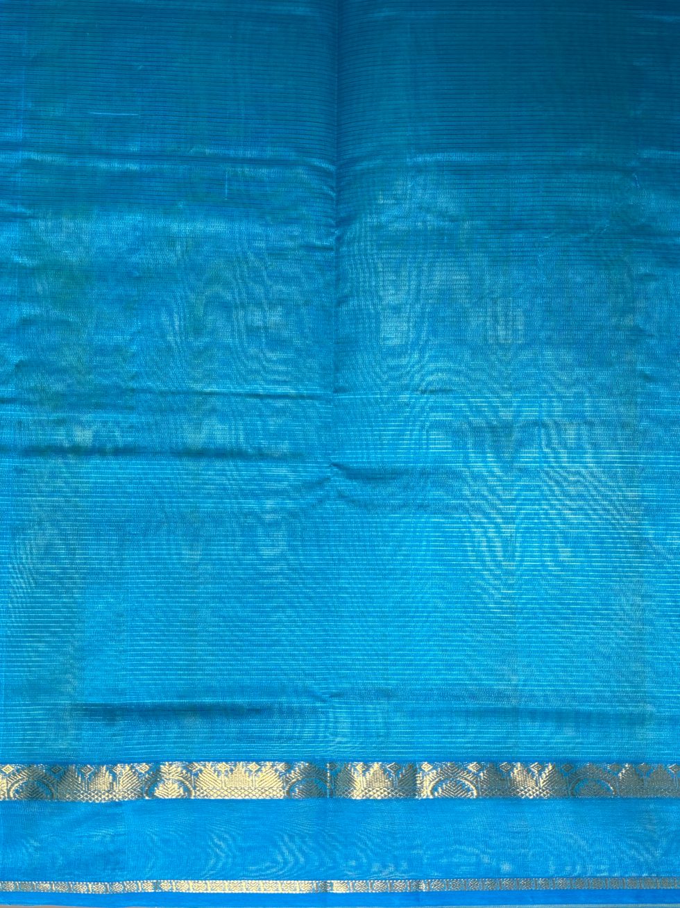 Simple Silk Cotton Saree in Pastel Green And CS Blue With Traditional Border