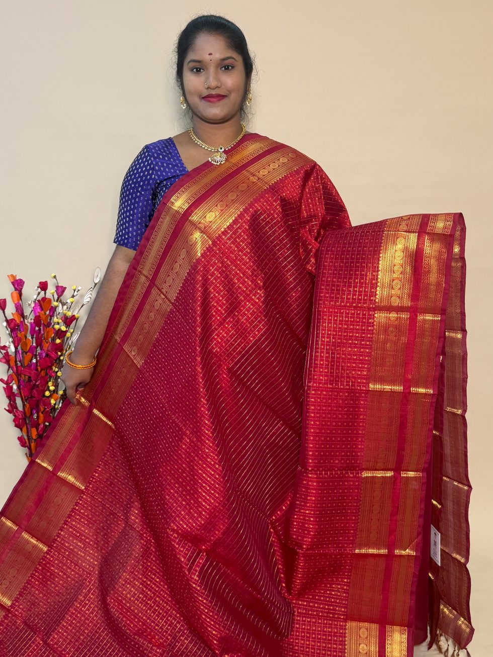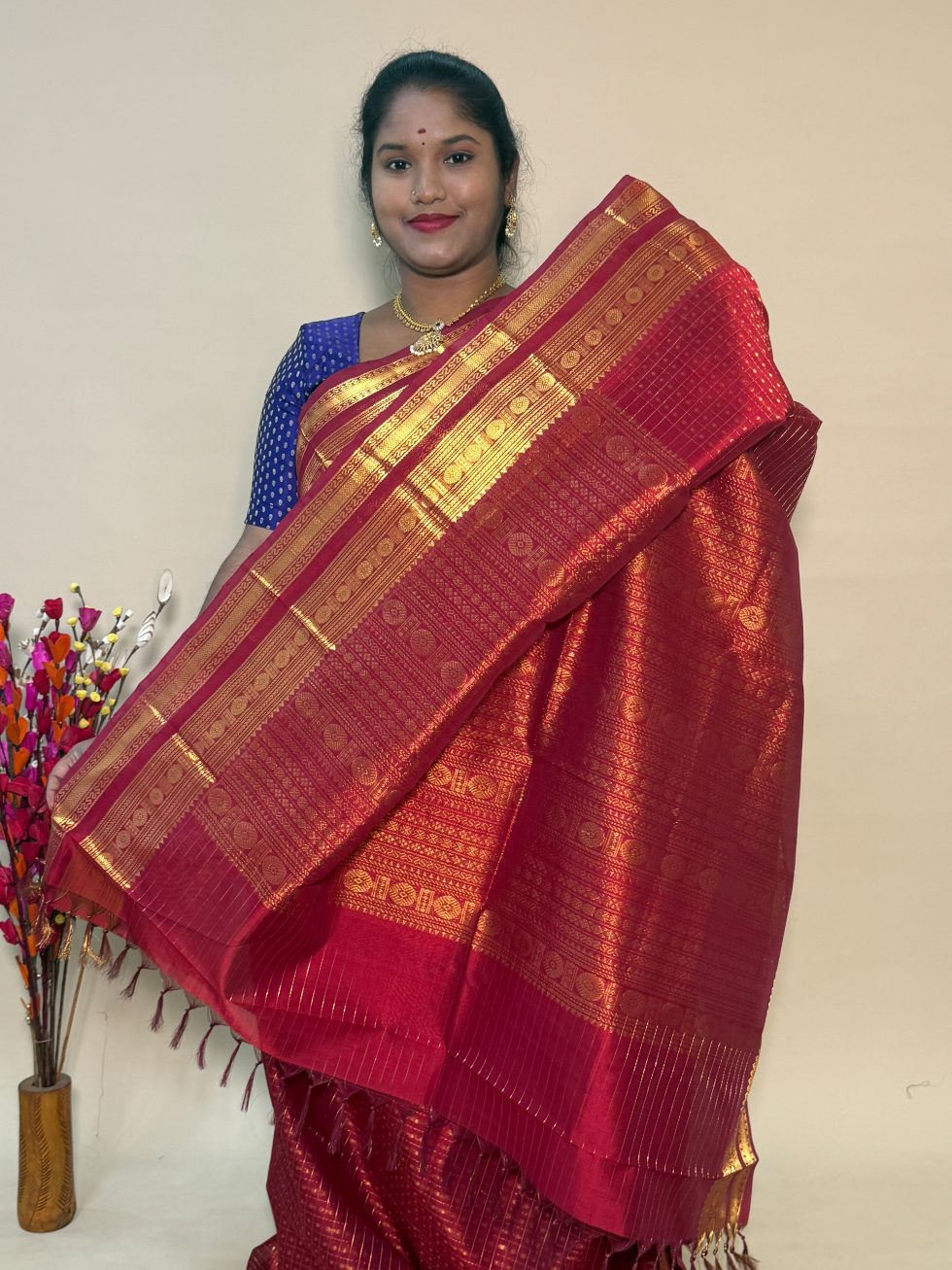 Traditional Silk Cotton Lakshadeepam Saree In Maroon With Traditional Border