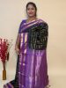 Vintage Korvai Silk Cotton In Black And Lavender With Traditional Border